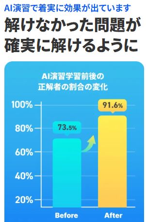 AIのサポートがあることで、「できる」までしっかり進めるようになっています。